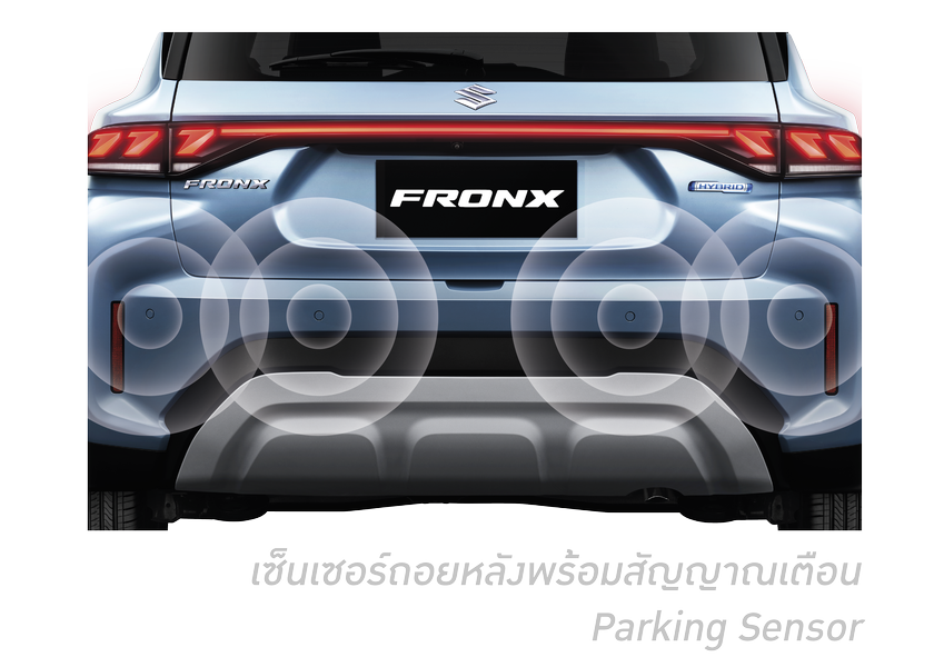 ALL NEW SUZUKI FRONX โดดเด่นด้วยดีไซน์ภายนอกที่สะดุดตาด้วยไฟหน้าพร้อม Daytime Running Light กระจังหน้าทรงพลังเสริมความพรีเมียมด้วยลายเส้นโครเมียม และไฟท้าย LED เชื่อมต่อเต็มแนวโดดเด่นในทุกมุมมอง ส่วนภายในห้องโดยสารออกแบบให้มีสไตล์และความสบายเข้าด้วยกันอย่างลงตัว พร้อมพวงมาลัย Multifunction ดีไซน์สปอร์ต Paddle Shift ขับสนุกตลอดทาง จอระบบสัมผัสขนาด 9 นิ้ว รองรับ Apple CarPlay แบบไร้สาย ระบบ Keyless Push Start แท่นชาร์จโทรศัพท์แบบไร้สาย พร้อมช่องเชื่อมต่อ USB และช่องปรับอากาศสำหรับที่นั่งด้านหลัง พร้อม USB Charger