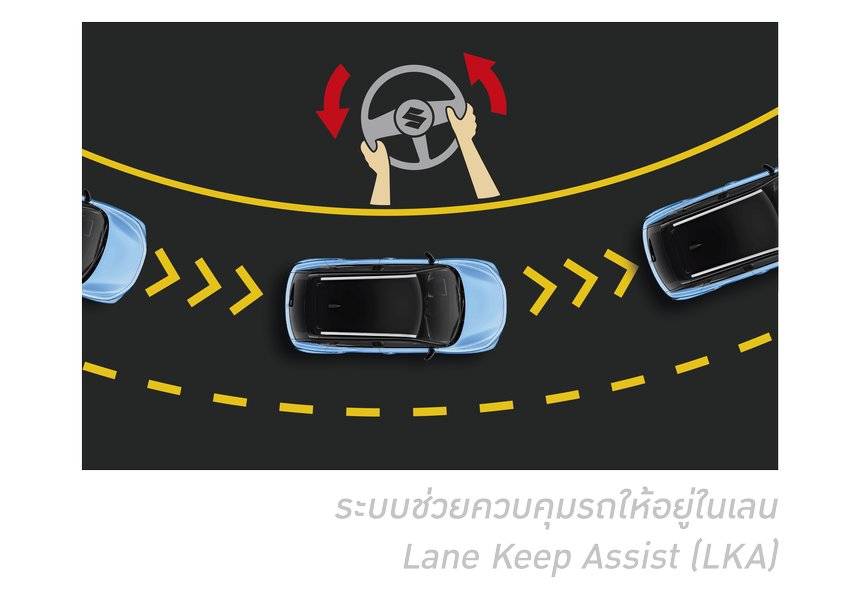 - ระบบช่วยควบคุมรถให้อยู่ในเลน Lane Keep Assist (LKA)