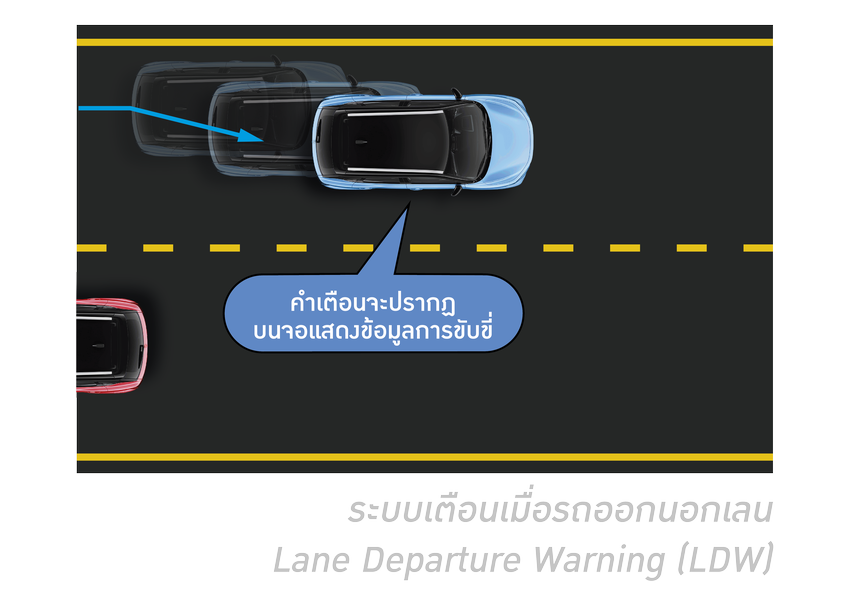 - ระบบเตือนเมื่อรถออกนอกเลน Lane Departure Warning (LDW)
