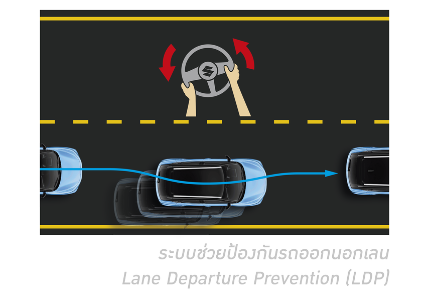 - ระบบช่วยป้องกันรถออกนอกเลน Lane Departure Prevention (LDP)