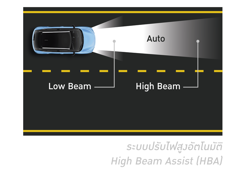 - ระบบปรับไฟสูงอัตโนมัติ High Beam Assist (HBA)