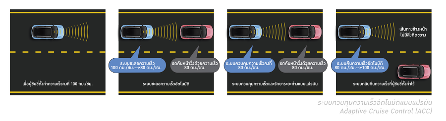 - ระบบควบคุมความเร็วอัตโนมัติแบบแปรผัน Adaptive Cruise Control (ACC)
