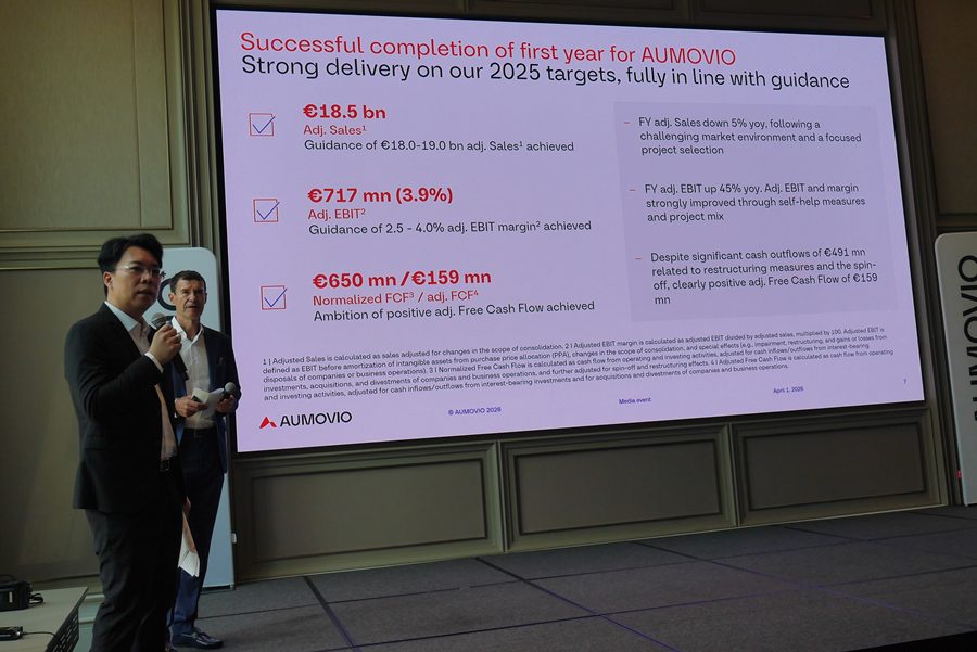 นอกเหนือจากพอร์ตโฟลิโอด้านนวัตกรรมแล้ว AUMOVIO ยังมีขนาดธุรกิจ และความแข็งแกร่งทางการตลาดที่พร้อมรองรับการเติบโตในระยะยาว โดยทำงานร่วมกับผู้ผลิตรถยนต์ชั้นนำทั่วโลก ครอบคลุมทั้งผู้เล่นดั้งเดิมและผู้เล่นรายใหม่ บนรากฐานของความเชี่ยวชาญด้านเทคโนโลยี เครือข่ายพันธมิตรที่แข็งแกร่ง และการดำเนินงานในระดับโลกควบคู่กับแนวทางlocal-for-local ในปีงบประมาณ 2568 AUMOVIO มียอด adjusted consolidated sales อยู่ที่ 18.5 พันล้านยูโร และมี adjusted EBIT margin ที่ 3.9% โดยราว 80% ของยอดขายมาจากกลุ่มผลิตภัณฑ์ที่เป็นผู้นำในตลาดโลก สะท้อนถึงความแข็งแกร่งของพอร์ตโฟลิโอ ศักยภาพในการแข่งขัน และความเชื่อมั่นที่ลูกค้ามีต่อเทคโนโลยีของบริษัท