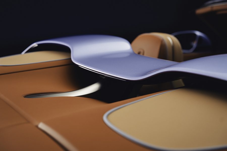 เมื่อพับเก็บแล้วจะเผยให้เห็นฝาครอบบริเวณด้านหลังเบาะโดยสาร (Airbridge) ที่มีสีเดียวกัน รายละเอียดภายนอกยังมากับเส้นสายบนฝากระโปรงหน้าในเฉดสี “Midnight Breslow Blue” ที่เข้ากันกับเฉดสีตัวถังด้านข้าง และเฉดสีของซี่ล้ออัลลอยด์และกระจกมองข้าง พร้อมด้วยการตกแต่งปลายท่อไอเสียไทเทเนียมขัดเงาและกระจังหน้าสีเงินแบบเงา