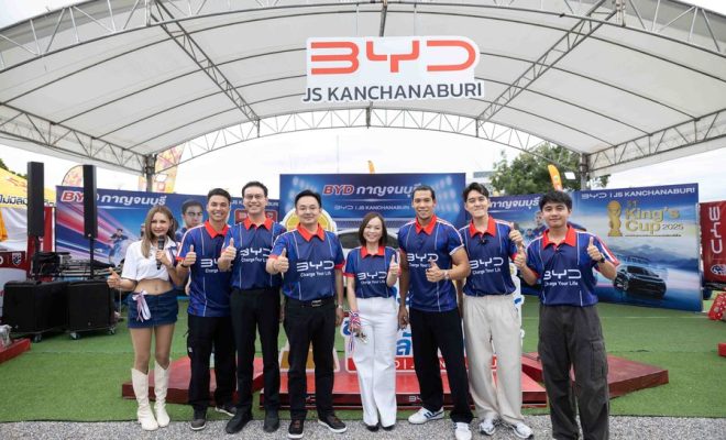 นอกจากจะได้ลุ้นผลการแข่งขันแล้ว ผู้เข้าร่วมชมงานยังได้สัมผัส นวัตกรรมยานยนต์พลังงานใหม่สองรุ่นที่ บีวายดี นำมาจัดแสดงถึงขอบสนาม โดยรุ่นแรกคือ BYD SEALION 7 รถยนต์ SUV ขุมพลังไฟฟ้าที่สรรสร้างขึ้นเพื่อการขับเคลื่อนยุคใหม่ โดดเด่นกับดีไซน์โฉบเฉี่ยว พร้อมปลุกเร้าจิตวิญญาณแห่งการขับขี่ ด้วยสมรรถนะสปอร์ตเต็มขั้นในรุ่น AWD Performance มาพร้อมมอเตอร์ไฟฟ้าคู่ กำลังรวมสูงสุด 390 กิโลวัตต์ แรงบิดรวมสูงสุด 690 นิวตัน-เมตร อัตราเร่ง 0 – 100 กิโลเมตร/ชั่วโมง ภายใน 4.5 วินาที และขับขี่ได้ไกลสูงสุดถึง 542 กิโลเมตร หรือ 567 กิโลเมตร ในรุ่น Premium (ตามมาตรฐาน NEDC) ด้วยเทคโนโลยี BYD Blade Battery ขนาด 82.5 กิโลวัตต์-ชั่วโมง
