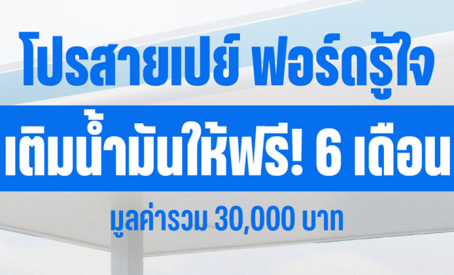 ฟอร์ด ประเทศไทย ตอกย้ำความมุ่งมั่นในการดูแลลูกค้าท่ามกลางสภาวะราคาน้ำมันที่ปรับตัวสูงขึ้นอย่างต่อเนื่อง ส่งแคมเปญส่งเสริมการขายสุดพิเศษ ‘โปรสายเปย์ ฟอร์ดรู้ใจ เติมน้ำมันให้ฟรี! 6 เดือน’ มูลค่ารวม 30,000 บาท สำหรับลูกค้าที่จองและออกรถฟอร์ดทุกรุ่น (ยกเว้นฟอร์ด เรนเจอร์ ใหม่ และ ฟอร์ด เอเวอเรสต์ ใหม่ รุ่นปี 2026)