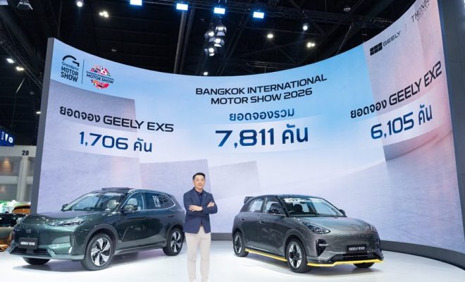 บริษัท ธนบุรีนอยสเติน จำกัด ในเครือกลุ่มธนบุรี ผู้นำเข้าและจัดจำหน่ายรถยนต์แบรนด์ จีลี่ (GEELY) อย่างเป็นทางการในประเทศไทย ประกาศความสำเร็จครั้งสำคัญภายในงาน บางกอก อินเตอร์เนชั่นแนล มอเตอร์โชว์ ครั้งที่ 47 ด้วยยอดจองรถยนต์ไฟฟ้าเรือธง ทั้ง GEELY EX5 1,706 คัน และ GEELY EX2 6,105 คัน รวม 7,811 คัน ตลอดช่วงการจัดงาน ซึ่งเป็นตัวเลขสูงสุดนับตั้งแต่เปิดตัวในประเทศไทย พร้อมต่อยอดความแรงของกระแสความนิยมด้วยการขยายระยะเวลาโปรโมชันพิเศษจนถึง 30 เมษายน 2569 เปิดโอกาสให้ลูกค้าที่สนใจได้เป็นเจ้าของรถยนต์ไฟฟ้า GEELY ในราคาสุดคุ้ม สะท้อนความเชื่อมั่นของผู้บริโภคชาวไทยที่มีต่อคุณภาพ เทคโนโลยี ตลอดจนความคุ้มค่าของรถยนต์ไฟฟ้า GEELY และความพร้อมในด้านบริการหลังการขายเหนือระดับที่เป็นดีเอ็นเอของกลุ่มธนบุรีได้อย่างชัดเจน
