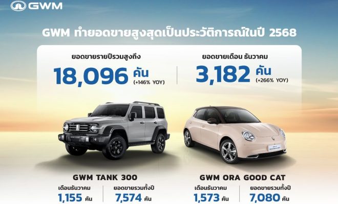 GWM สร้างสถิติยอดขายสูงสุดเป็นประวัติการณ์ ปิดยอด 2568 ทะลุ 18,096 คัน