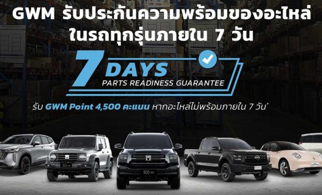 GWM ออกแคมเปญ รับประกันความพร้อมของอะไหล่ภายใน 7 วัน