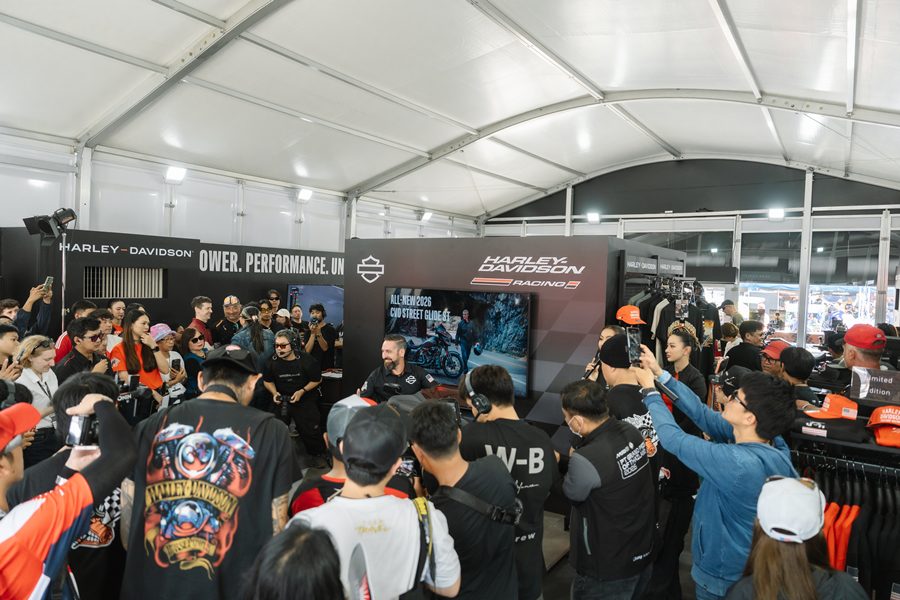 ตลอดสุดสัปดาห์การแข่งขัน “MotoGP Thailand 2026” ทั้ง 3 วัน บูธ Harley-Davidson นับเป็นหนึ่งในไฮไลต์สำคัญภายใน MotoGP Fan Village ด้วยการจัดแสดงมอเตอร์ไซค์ระดับพรีเมียมควบคู่กับกิจกรรมอินเตอร์แอ็กทิฟที่มีความหลากหลาย อาทิ Moto Simulator ที่มอบประสบการณ์ผ่าน CVO Road Glide ST รวมถึงการจัดแสดงมอเตอร์ไซค์รุ่นที่มีความโดดเด่นอย่าง Road Glide และ Pan America เวอร์ชันปรับแต่งเพื่อการแข่งขันโดยเฉพาะ ที่สามารถดึงดูดความสนใจของผู้ร่วมงานได้อย่างต่อเนื่อง นอกจากนี้ ผู้เข้าชมยังได้สัมผัสคอลเลกชัน Harley-Davidson Factory Racing ซีซันที่ 2 ซึ่งได้รับแรงบันดาลใจมาจากสนามแข่ง ผสมผสานวัสดุที่เน้นสมรรถนะเข้ากับสไตล์อันเป็นเอกลักษณ์ของแบรนด์ได้อย่างลงตัว จากองค์ประกอบทั้งหมดนี้ ทำให้ภายในบูธ Harley-Davidson กลายเป็นประสบการณ์สุดพิเศษสำหรับสื่อมวลชน แฟน ๆ และผู้ร่วมงาน ให้ได้สัมผัสความหลงใหลของ Harley-Davidson ทั้งด้านสมรรถนะ นวัตกรรม และวัฒนธรรมการขับขี่ได้อย่างรอบด้าน ตอกย้ำบทบาทของ Harley-Davidson บนเวที “MotoGP Thailand 2026” ในฐานะแบรนด์ที่เชื่อมโยงโลกของไลฟ์สไตล์และมอเตอร์สปอร์ตเข้าไว้ด้วยกันอย่างมีสเน่ห์และทรงพลัง