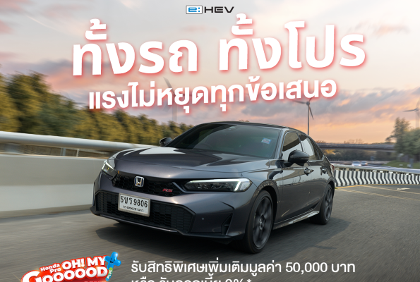 บริษัท ฮอนด้า ออโตโมบิล (ประเทศไทย) จำกัด จัดโปรแรงส่งท้ายปีกับแคมเปญ “Honda Pro OH! MY GOOOOOD PLUS+” เพิ่มเติมทางเลือกใหม่สำหรับรถยนต์สองรุ่นฮิตในไลน์อัป Honda e:HEV – The EXCITING Hybrid ทั้ง Honda Civic e:HEV และ New Honda HR-V e:HEV มอบความคุ้มค่าที่ “ตรงใจ เลือกได้เอง” ให้คุณเลือกได้ดั่งใจรับสิทธิพิเศษเพิ่มเติมมูลค่า 50,000 บาท หรือ เลือกรับดอกเบี้ยพิเศษ 0% พร้อมรับ Honda Exclusive Care 5 ปี มูลค่าสูงสุด 173,000 บาท** ให้การเป็นเจ้าของรถยนต์ทั้งสองรุ่นเป็นเรื่องง่ายกว่าที่เคย สำหรับลูกค้าที่จองรถยนต์ตั้งแต่วันที่ 1 พฤศจิกายน 2568 – 11 ธันวาคม 2568 และรับรถภายในวันที่ 31 ธันวาคม 2568 อย่าพลาด! โปรแรงแห่งปีที่ทำให้ความฝันของคุณเป็นจริง