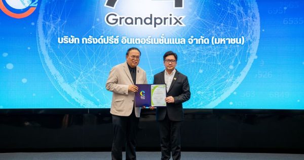บริษัท กรังด์ปรีซ์ อินเตอร์เนชั่นแนล จำกัด (มหาชน) โดยนายพีระพงศ์ เอี่ยมลำเนา ประธานเจ้าหน้าที่บริหาร เข้ารับมอบประกาศนียบัตรเครื่องหมายรับรองฉลากคาร์บอน ประเภท เครื่องหมายคาร์บอนฟุตพริ้นท์ขององค์กร
