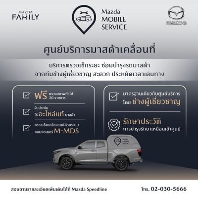 มาสด้าต่อยอดสิทธิประโยชน์ Mazda Family มุ่งมั่นเอาใจใส่ดูแลลูกค้าและยกระดับประสบการณ์บริการหลังการขายให้ครอบคลุมทุกมิติ เพื่อให้ลูกค้ามั่นใจในการครอบครองรถยนต์มาสด้าในระยะยาว ด้วยโปรแกรมสุดพิเศษ “MAZDA WARRANTY PLUS ใหม่”
