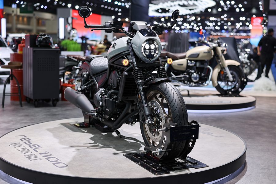 - “New Honda Rebel1100” ภายใต้คอนเซปต์ “Ride Your Rule ขบถ…เพื่อกำหนดนิยามใหม่” อัปเดตสีใหม่ Pearl Deep Mud Grey เพิ่มความโดดเด่นและสดใหม่ยิ่งขึ้น พร้อมสะท้อนเอกลักษณ์ของรถจักรยานยนต์สไตล์คัสตอมบ็อบเบอร์ที่มีกลิ่นอายครุยเซอร์คลาสสิกอย่างชัดเจน มาพร้อมขุมพลังเครื่องยนต์ 2 สูบเรียง ขนาด 1,084 ซีซี และเทคโนโลยีสมัยใหม่ที่ช่วยเติมเต็มประสบการณ์การขับขี่ได้อย่างครบครัน โดยรุ่น DCT วางจำหน่ายด้วยราคาแนะนำ 446,000 บาท และ DCT Touring Edition ราคาแนะนำที่ 496,000 บาท