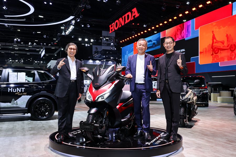 - “New Honda Forza350” มาในคอนเซปต์ “Beyond the Exceptional เหนือกว่า…ทุกความเป็นที่สุด” พร้อมสีใหม่ Matte Boulevard สีดำ-แดงแบบทูโทนแมตต์ ที่ช่วยเสริมภาพลักษณ์ Sport Luxury ให้โดดเด่นยิ่งขึ้น โดยมาพร้อมดีไซน์ไฟหน้า Dual LED Headlight รวมถึง Daytime Running Light และไฟเลี้ยวแบบ Built-in LED รวมถึงไฟท้าย LED Taillight และระบบ Emergency Stop Signal (ESS) ช่วยเพิ่มความมั่นใจในการขับขี่ อีกทั้ง กระจกบังลมหน้าไฟฟ้าปรับระดับได้ 180 มม. และพื้นที่เก็บสัมภาระขนาดใหญ่รองรับหมวกนิรภัยได้ 2 ใบ พร้อมไฟส่องสว่าง ช่องชาร์จ USB Type-C เพื่อตอบโจทย์การใช้งานในทุกไลฟ์สไตล์ โดยพร้อมวางจำหน่าย 5 สี ได้แก่ สีใหม่ ดำ-แดง (Matte Boulevard) ร่วมด้วย สีดำ (Cosmic Black) สีเทา (Meteor Gray) สีแดง-ดำ (Sunstorm Red) และสีขาว-ดำ (Stellar White) ราคาแนะนำที่ 185,340 บาท