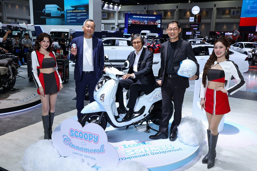 - โมเดลสุดเอกซ์คลูซีฟ “New Honda SCOOPY x Cinnamoroll Limited Edition” ที่ได้คอลแลบกับ Cinnamoroll มาพร้อมคอนเซปต์ “The ICONIC Softness ต้าวสุดซอฟต์ ป๊อปสุดเทรนด์” นำเสนอความซอฟต์อย่างมีสไตล์ด้วยสีขาว-ฟ้า สีเอกลักษณ์ของ Cinnamoroll พร้อม Soft Emblem ลวดลายต้าวสุดซอฟต์ เสริมความลิมิเต็ดขั้นสุดกับสติกเกอร์ Serial Number รันเลขที่ตั้งแต่ 0001 – 2000 คัน มาพร้อม Box set สุดป๊อป ได้แก่ Honda SMART KEY พร้อมเคสลาย Cinnamoroll หมวกกันน็อก กรอบป้ายทะเบียน และแผ่นยางรองพื้นลวดลาย Cinnamoroll แมตช์กับดีไซน์รถได้อย่างลงตัว โดยผลิตจำนวนจำกัด 2,000 คันเท่านั้น ราคาแนะนำที่ 59,800 บาท พร้อมเปิดรับจองที่มอเตอร์โชว์ 2026 เป็นที่แรก และ Honda Wing Center ทุกสาขา