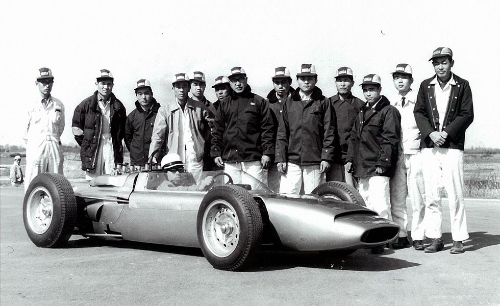 กลุ่มวิศวกรของฮอนด้าผู้ได้รับคัดเลือกเข้าร่วมทีมพัฒนา เพื่อเตรียมพร้อมสำหรับการเข้าร่วมแข่งขัน F1 เป็นครั้งแรกในปี 1964