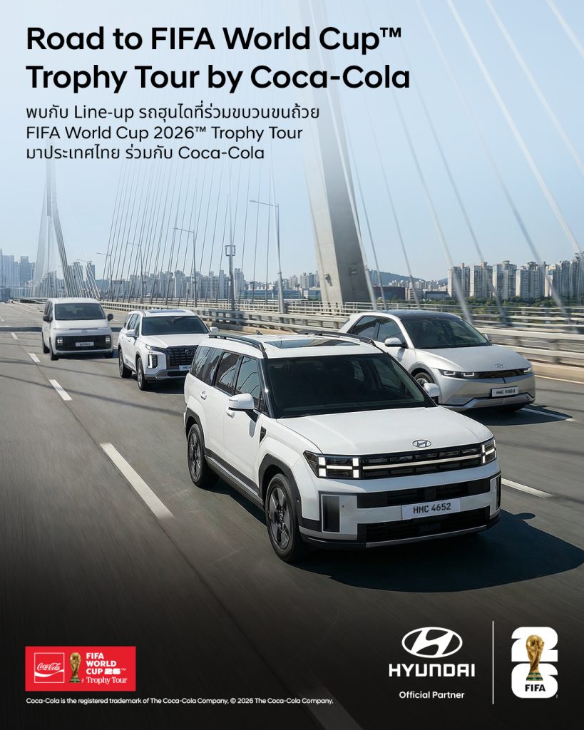 กระแสฟุตบอลโลกเริ่มอุ่นเครื่องก่อนศึกใหญ่จะเปิดฉากอย่างเป็นทางการ เมื่อ ฮุนได จับมือกับ “โคคา–โคล่า” จุดประกายความคลั่งไคล้ลูกหนังในประเทศไทย ผ่านกิจกรรมระดับโลก FIFA World Cup 2026™ Trophy Tour by Coca-Cola นำถ้วยแห่งประวัติศาสตร์อันทรงคุณค่าและยิ่งใหญ่ที่สุดในวงการฟุตบอลอย่าง FIFA World Cup™ Trophy เดินทางมาให้แฟนบอลชาวไทยได้สัมผัสของจริงแบบใกล้ชิด ก่อนศึก FIFA World Cup 2026™ จะระเบิดความมันทั่วโลก โดยฮุนไดในฐานะ Mobility Partner จัดขบวนรถยนต์พิเศษทำหน้าที่ขนส่งถ้วยแชมป์สัญลักษณ์แห่งความฝัน ความสำเร็จ และเกียรติยศสูงสุดของนักฟุตบอลอาชีพ สร้างโมเมนต์ประวัติศาสตร์ให้คอบอลไทยได้ร่วมเป็นส่วนหนึ่ง ท่ามกลางบรรยากาศการนับถอยหลังสู่มหกรรมลูกหนังที่แฟนกีฬาทั่วโลกเฝ้ารอ
