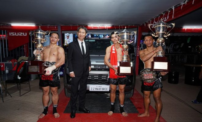 มร. ทาคาชิ ฮาตะ กรรมการผู้จัดการ บริษัท ตรีเพชรอีซูซุเซลส์ จำกัด กล่าวว่า “ขอแสดงความยินดีกับ จรวดศึก และ เขี้ยวเพชร ที่คว้าแชมป์ THAI FIGHT 2025 มาครองได้อย่างสง่างาม ด้วยหัวใจนักสู้ที่แข็งแกร่งจนได้รับพระราชทานถ้วยรางวัลอันทรงเกียรติ ซึ่งถือเป็นความสำเร็จอันน่าภาคภูมิใจในอาชีพนักชก ผมขออวยพรให้ทั้งสองท่านประสบความสำเร็จยิ่งขึ้นไปในอนาคต พร้อมกันนี้ ขอขอบคุณผู้ชมทุกท่านที่ให้การสนับสนุนรถอีซูซุ รายการ Isuzu Thailand Championship และ THAI FIGHT ด้วยดีเสมอมา ทุกแรงใจของท่านคือพลังสำคัญที่ขับเคลื่อนให้อีซูซุมุ่งมั่นพัฒนาอย่างไม่หยุดยั้ง และเราหวังเป็นอย่างยิ่งว่า จะได้รับความไว้วางใจจากทุกท่านเช่นนี้ตลอดไป”