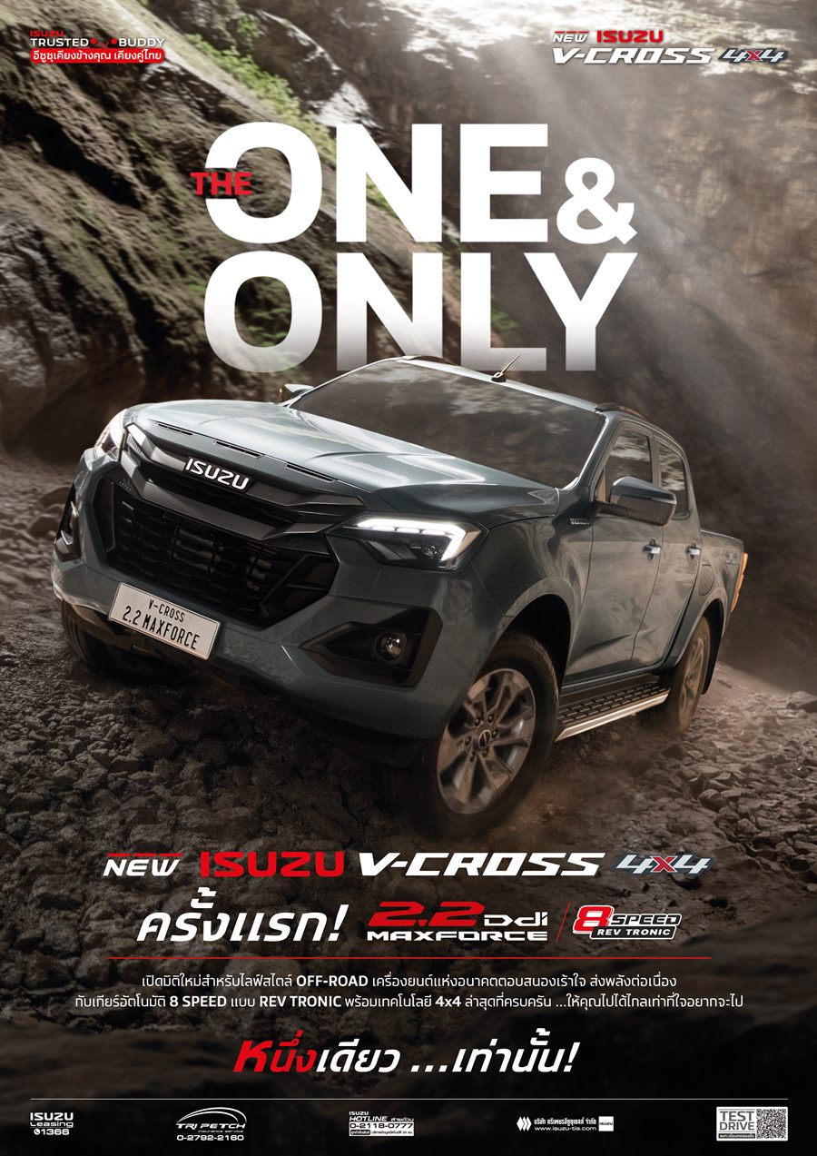 ผู้สนใจสามารถสัมผัสและทดลองขับ ISUZU V-CROSS 4×4 “THE ONE & ONLY” และ MU-X “THE NEXT PEAK” 4WD เครื่องยนต์ 2.2 Ddi MAXFORCE ได้ที่โชว์รูมอีซูซุทั่วประเทศ ตั้งแต่วันที่ 7 มีนาคม 2569 หรือดูรายละเอียดเพิ่มเติมได้ที่ www.isuzu-tis.com และ LINE: @isuzuthai