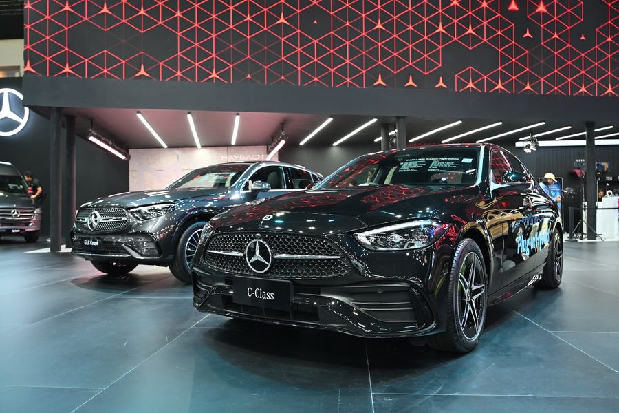 ภายในบูธเมอร์เซเดส-เบนซ์ ลูกค้าทุกคนจะได้พบกับยนตรกรรมใหม่ล่าสุดอีก 3 รุ่น ที่นำมาจัดแสดงเป็นครั้งแรกในประเทศไทย เริ่มด้วย The new CLA รถยนต์พลังงานไฟฟ้า 100% รุ่นแรกที่มาพร้อมแพลตฟอร์ม MMA (Mercedes-Benz Modular Architecture) และแบตเตอรี่ 800V ขนาด 85 kWh ซึ่งมอบระยะทางการขับขี่ด้วยพลังงานไฟฟ้าสูงสุดถึง 792 กิโลเมตร ต่อการชาร์จเต็มหนึ่งครั้ง ตามมาตรฐาน WLTP โดยจะมีการเปิดตัวอย่างเป็นทางการพร้อมประกาศราคาจำหน่าย ในช่วงต้นปี 2569 ตามด้วย G 450 d Edition STRONGER THAN THE 1980s โมเดลพิเศษที่พัฒนาขึ้นโดยมีแรงบันดาลใจมาจาก W460 ในยุค 80 นำเข้ามาในประเทศไทยจำนวน 3 คัน จาก 460 คันทั่วโลก วางจำหน่ายในราคา 14,180,000 บาท ปิดท้ายด้วยอีกหนึ่งโมเดลเอสยูวียอดนิยมที่มาพร้อมรุ่นพิเศษกับ GLA 200 Night Edition ที่เสริมลุคความสปอร์ตด้วยชุดแต่ง AMG Line และ Night Package รอบคัน และสีตัวถังแบบ MANUFAKTUR alpine grey solid วางจำหน่ายในราคา 2,580,000 บาท