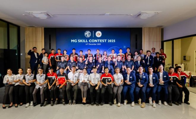 บริษัท เอสเอไอซี มอเตอร์ – ซีพี จำกัด และ บริษัท เอ็มจี เซลส์ (ประเทศไทย) จำกัด ผู้ผลิตและผู้จำหน่ายรถยนต์เอ็มจีในประเทศไทย จัดแข่งขันทักษะพนักงาน MG SKILL CONTEST 2025 ต่อเนื่องเป็นปีที่ 8 เดินหน้ายกระดับทักษะ ความรู้ รวมถึงมาตรฐานการปฏิบัติงานของบุคลากรในเครือข่ายเอ็มจีทั่วประเทศ ให้สอดรับกับมาตรฐานระดับสากลของแบรนด์ เอ็มจี ในปีนี้มีผู้เข้าแข่งขันจากทั้งฝ่ายขายและฝ่ายบริการหลังการขายรวมกว่า 1,000 คน จากศูนย์บริการทั่วประเทศ โดยเหลือผู้ผ่านการคัดเลือกเข้าสู่รอบสุดท้ายจำนวน 85 คน จากศูนย์บริการ 30 แห่งทั่วประเทศ ซึ่งกิจกรรมดังกล่าวถูกจัดขึ้นที่ มหาวิทยาลัยอัสสัมชัญ วิทยาเขตสุวรรณภูมิ อาคาร SAINT GABRIEL MARY (Research and Learning Center for NEV Technology) ศูนย์การเรียนรู้ด้านเทคโนโลยียานยนต์พลังงานใหม่ ที่เอ็มจีได้ลงนามความร่วมมือกับทางมหาวิทยาลัยในการร่วมพัฒนาหลักสูตร พร้อมสนับสนุนอุปกรณ์เพื่อการเรียนรู้และฝึกปฏิบัติ เพื่อยกระดับองค์ความรู้ด้านยานยนต์ไฟฟ้าและเทคโนโลยีสมัยใหม่อย่างเป็นระบบ