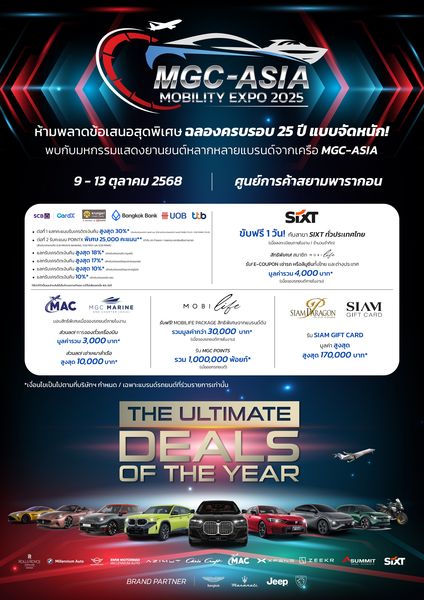 เริ่มแล้ว MGC-ASIA MOBILITY EXPO 2025 ขอเสนอสุดคุ้ม 9-13 ตุลาคมนี้ สยามพารากอน