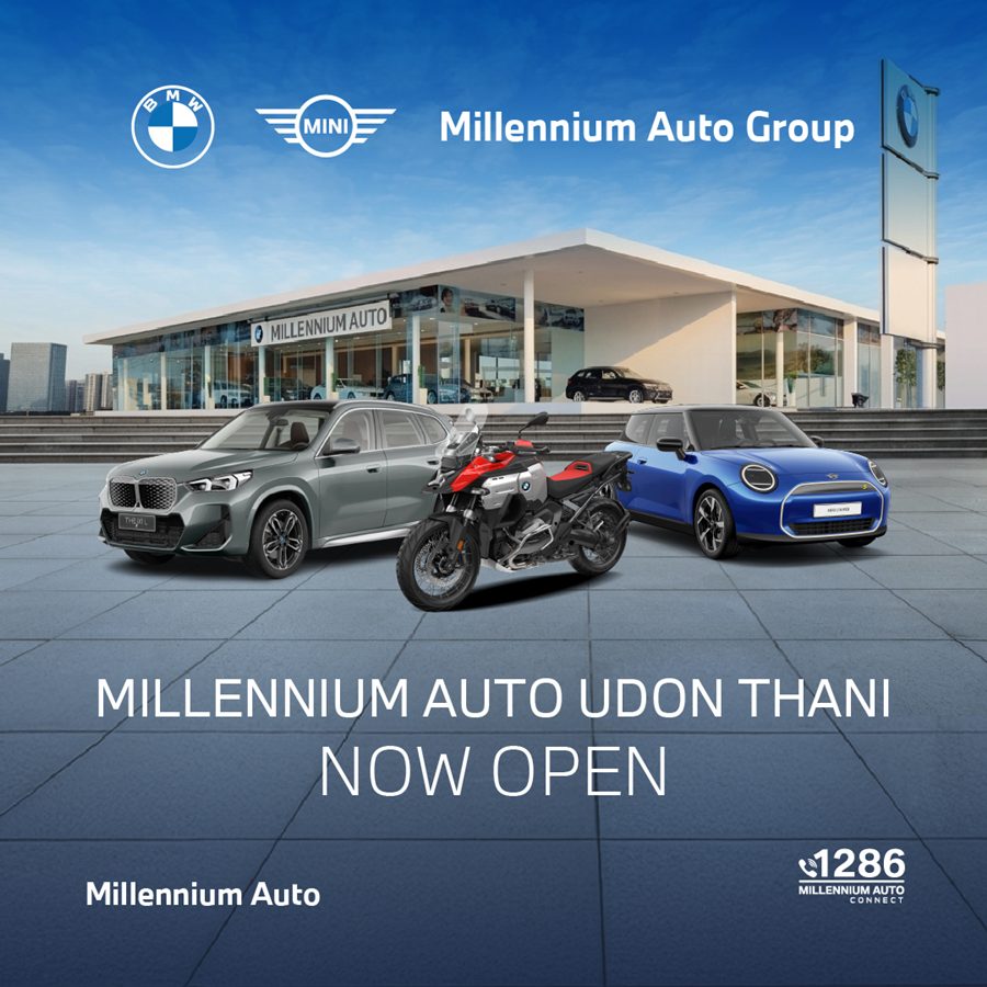 มิลเลนเนียม ออโต้ กรุ๊ป ผู้จำหน่ายรถยนต์บีเอ็มดับเบิลยู มินิ และบีเอ็มดับเบิลยู มอเตอร์ราด อย่างเป็นทางการ ภายใต้ MGC-ASIA ด้วยประสบการณ์ยาวนานกว่า 25 ปี เดินหน้าขยายเครือข่ายการให้บริการสู่ภาคตะวันออกเฉียงเหนือตอนบน ด้วยการเปิดโชว์รูมและศูนย์บริการแห่งใหม่ ครบวงจร ณ จังหวัดอุดรธานีอย่างเป็นทางการ เพื่อดูแล และส่งมอบการบริการที่ดีที่สุด แก่เจ้าของรถยนต์ บีเอ็มดับเบิลยู มินิ และมอเตอร์ไซค์ บีเอ็มดับเบิลยู มอเตอร์ราดในพื้นที่ พร้อมยกระดับประสบการณ์การบริการ ภายใต้มาตรฐานระดับพรีเมียม