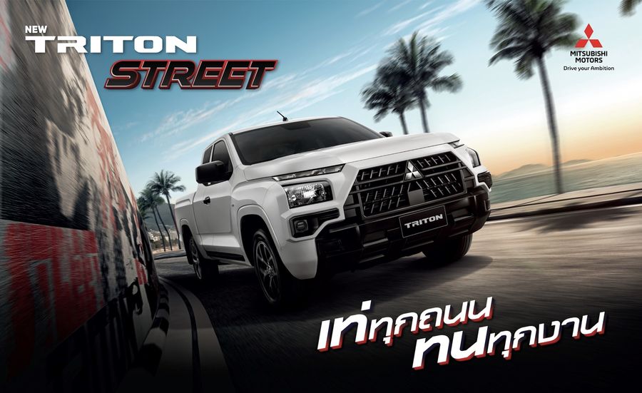 สำหรับ มิตซูบิชิ ไทรทัน สตรีท ใหม่ (เมกะ แค็บ ตัวเตี้ย) เท่จัดไม่เหมือนใคร ในลุคสปอร์ตเข้มและโฉบเฉี่ยว สะท้อนความแข็งแกร่งในสมรรถนะการขับขี่ ความทนทานด้านการใช้งานและความคล่องตัวในทุกเส้นทาง โดดเด่นด้วยการปรับลุคภายนอกใหม่ให้มีสไตล์มากยิ่งขึ้นด้วย การตกแต่งกระจังหน้าดีไซน์สปอร์ต และล้ออัลลอยขนาด 17 นิ้ว พร้อมลุยทุกความท้าทายด้วยแชสซีส์ MEGA FRAME ขนาดใหญ่ แข็งแรง แต่น้ำหนักเบา ขับเคลื่อนด้วยเครื่องยนต์ดีเซลประหยัดน้ำมัน ให้กำลังสูงสุด 150 แรงม้า และแรงบิดสูงสุด 330 นิวตันเมตร ตอบสนองทันใจทั้งการขับขี่ในเมืองและทางไกล ภายในห้องโดยสารตกแต่งโทนดำเท่ มาพร้อมหน้าจออินโฟเทนเมนต์ ขนาด 10 นิ้ว รองรับ Apple CarPlay & Android Auto และยกระดับความปลอดภัยเหนือชั้นด้วย ระบบเตือนการชนด้านหน้าตรงพร้อมระบบช่วยชะลอความเร็ว และระบบตรวจจับคนเดินถนน (Forward Collision Mitigation System with Pedestrian Detection — FCM) มอบความมั่นใจในทุกสภาพถนน และการใช้งานจริงทั้งวันทำงานและวันพักผ่อน