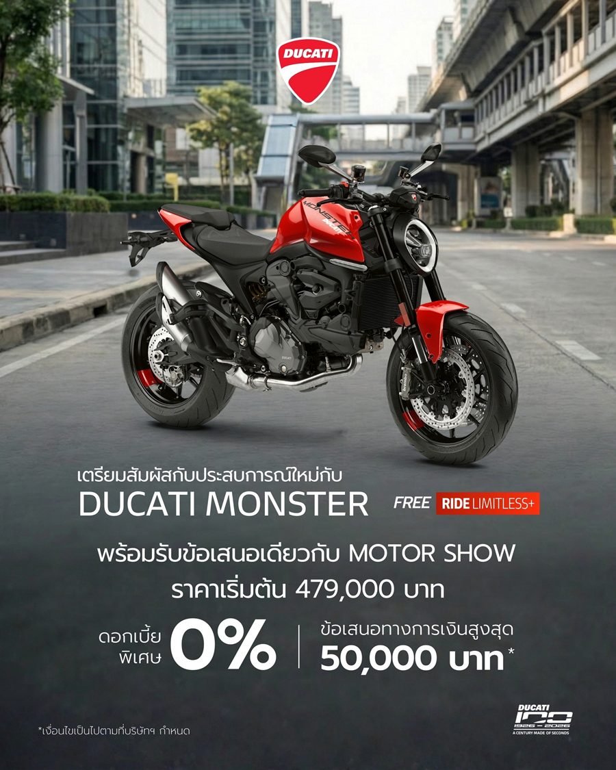 ดูคาติ ฉลอง 100 ปี จัดทัพครบทุก Model Range พร้อมเปิดตัว New Monster+ และแคมเปญ “Limitless Ride ใน Motor Show 2026