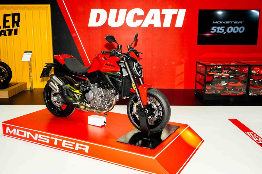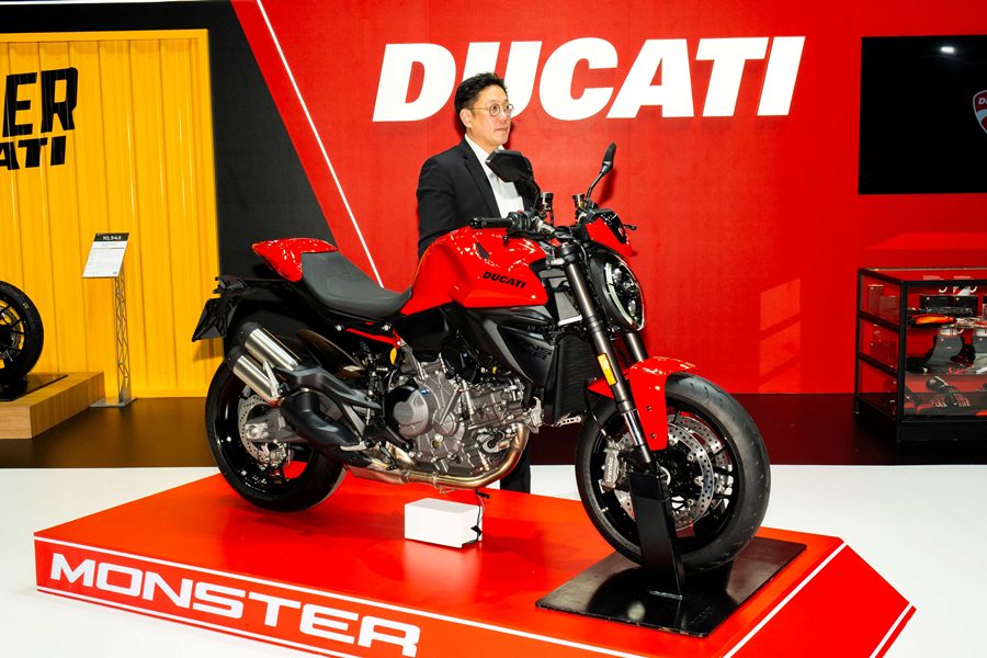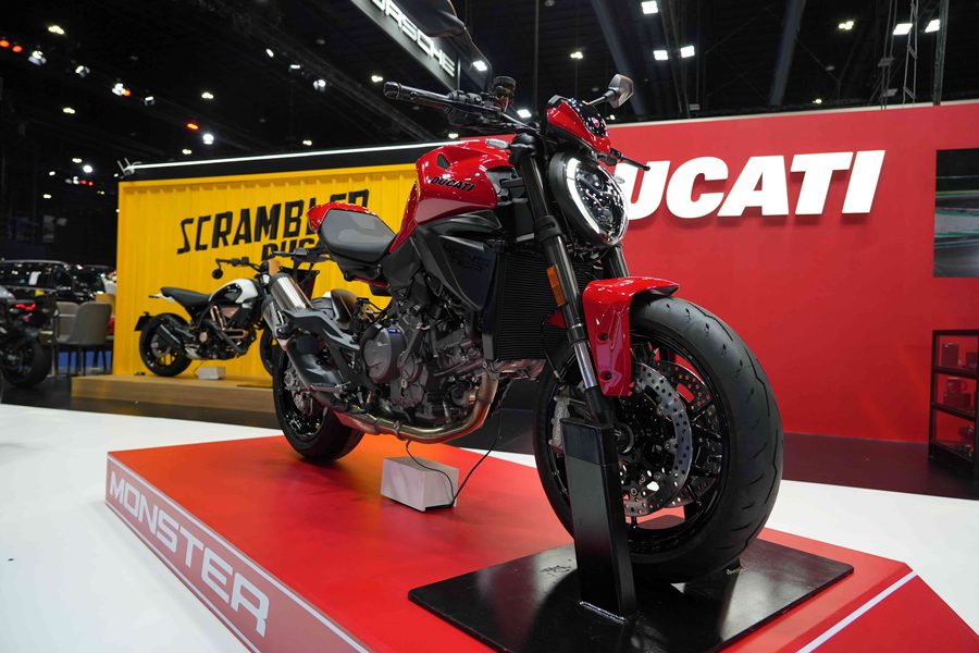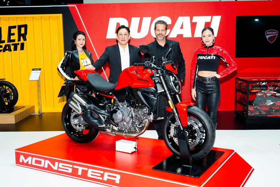 ไฮไลต์สำคัญของบูธปีนี้คือ New Monster+ สปอร์ตเน็กเก็ตไบค์ระดับไอคอน ที่กลับมาภายใต้แนวคิด “Everything you need, nothing more” ถ่ายทอดปรัชญาการออกแบบที่ตัดทอนสิ่งไม่จำเป็น เหลือไว้เพียง “แก่นแท้ของความสนุกในการขับขี่” มาพร้อมเครื่องยนต์ Ducati V2 รุ่นใหม่ ให้สมรรถนะ 111 แรงม้า 890 ซีซี โครงสร้างน้ำหนักเบาเพียง 175 กิโลกรัม และเทคโนโลยีอิเล็กทรอนิกส์ครบครัน ทั้ง Riding Modes, Traction Control, Wheelie Control, Quick Shift 2.0 และครั้งแรกสำหรับ Monster ที่มี Engine Brake control (EBC) พร้อมดีไซน์ใหม่ที่ยังคงเอกลักษณ์ Monster อย่างชัดเจน