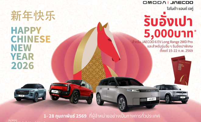 OMODA & JAECOO ผู้นำด้านนวัตกรรมยานยนต์พลังงานไฟฟ้าระดับพรีเมียม ขอเป็นส่วนหนึ่งในการส่งมอบความสุขเฉลิมฉลองเทศกาลตรุษจีน พร้อมมอบสิทธิพิเศษต้อนรับปีใหม่ เพื่อเป็นจุดเริ่มต้นแห่งความสุข ความมั่งคั่ง และความสำเร็จไปด้วยกัน