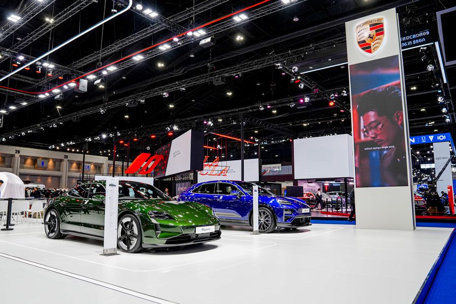 ปอร์เช่ ประเทศไทย พร้อมจัดแสดงยนตรกรรมให้ท่านได้ร่วมสัมผัสสมรรถนะของปอร์เช่ในหลากหลายขุมพลัง นำเสนอยนตรกรรมอย่างครบถ้วน ครอบคลุมทั้งรถสปอร์ตระดับตำนาน นวัตกรรมไฟฟ้าเต็มรูปแบบ และเทคโนโลยีปลั๊กอินไฮบริดขั้นสูง พร้อมร่วมเฉลิมฉลอง 75 ปีแห่งปอร์เช่ มอเตอร์สปอร์ตด้วยยนตรกรรมระดับตำนานทั้งปอร์เช่ 911 และ 718 ที่สะท้อนมรดกแห่งสนามแข่งและเอกลักษณ์การขับขี่ของปอร์เช่ พร้อมกลุ่มรถพลังงานไฟฟ้าเต็มรูปแบบนำโดยเอสยูวีอย่างมาคันน์ จีทีเอสและรถสปอร์ตพลังงานไฟฟ้าอย่างไทคานน์ (Taycan) และไทคานน์ ครอส ทัวริสโม (Taycan Cross Turismo)
