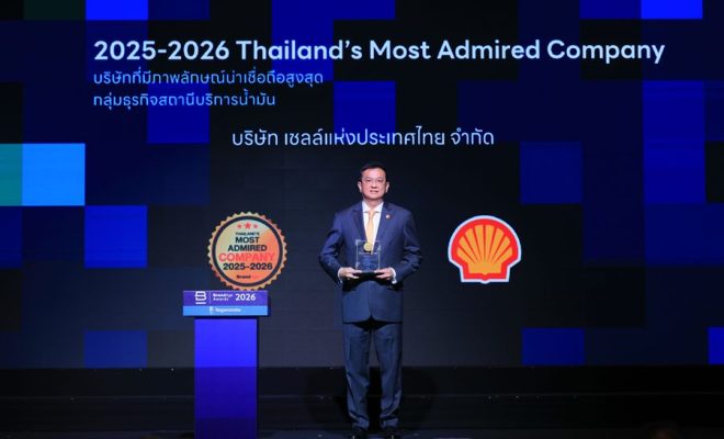 เชลล์ คว้ารางวัลด้านภาพลักษณ์องค์กร โดยครองอันดับน่าเชื่อถือสูงสุดในกลุ่มธุรกิจสถานีบริการน้ำมันต่อเนื่องเป็นปีที่ 2 จากผลสำรวจ 2025-2026 Thailand’s Most Admired Company