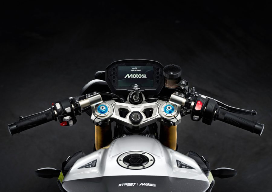 ด้านสไตล์อันเป็นเอกลักษณ์ Street Triple Moto2™ Edition ยกระดับความพิเศษและ DNA ของรถแข่งไปอีกขั้น ด้วยโทนสี Mineral Grey & Crystal White เสริมด้วยซับเฟรมด้านหลังสี Triumph Performance Yellow และแถบล้อที่เข้าชุดกัน มอบสุนทรียภาพอันหรูหราแต่สปอร์ต รวมถึงโลโก้ Moto2™ แสนสะดุดตาบนถังน้ำมัน เบาะนั่ง ท่อเก็บเสียง ตลอดจนหน้าจอ TFT ขนาด 5 นิ้ว ที่เพิ่มความพิเศษด้วยหน้าจอเริ่มต้นที่ออกแบบเฉพาะเพื่อแสดงถึงสายเลือดนักแข่ง ตอกย้ำความเชื่อมโยงโดยตรงกับโลกการแข่งขัน Moto2™ ทั้งแผงข้าง และฝาครอบไฟหน้าผลิตจากคาร์บอนไฟเบอร์ ซึ่งมาพร้อมกับคานบนที่ขึ้นรูปด้วยเครื่องจักรบิลเล็ตพร้อมหมายเลขกำกับเฉพาะ ตอกย้ำสถานะรุ่นลิมิเต็ดอิดิชัน พร้อมกันนี้สำหรับผู้ที่ต้องการปรับแต่งรถให้สะท้อนตัวตนมากยิ่งขึ้น ไทรอัมพ์มีอุปกรณ์ตกแต่งแท้ให้เลือกมากถึง 35 รายการ ครอบคลุมทั้งด้านสไตล์ การปกป้องตัวรถ และการอัปเกรดสมรรถนะ เพื่อให้ทุกคันสามารถปรับจูนให้เข้ากับความชอบและสไตล์การขับขี่ของแต่ละคนได้อย่างลงตัว” นายชินศักดิ์ กล่าวทิ้งท้าย