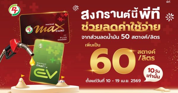 PTG มอบของขวัญพิเศษในช่วงเทศกาลสงกรานต์ ด้วยโปรโมชั่นเพิ่มส่วนลดน้ำมันสูงสุดเป็น 60 สตางค์ต่อลิตร ช่วยลดภาระค่าเดินทางประชาชน