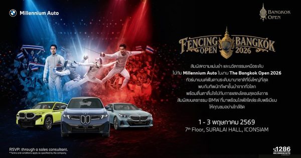 บริษัท มิลเลนเนียม ออโต้ กรุ๊ป จำกัด ผู้จำหน่ายรถยนต์ บีเอ็มดับเบิลยู, มินิ และ มอเตอร์ไซค์ บีเอ็มดับเบิลยู มอเตอร์ราด อย่างเป็นทางการในประเทศไทย ภายใต้บริษัท มิลเลนเนียม กรุ๊ป คอร์ปอเรชั่น (เอเชีย) จำกัด (มหาชน) หรือ MGC-ASIA ร่วมสนับสนุนการแข่งขันกีฬาฟันดาบ รายการ ‘BANGKOK OPEN FENCING 2026’ โดยความร่วมมือระหว่าง สโมสรฟันดาบ Ying Fencing Club (Thailand) และ Pico Fencing Club (Iran) ภายใต้แนวคิด ‘Sport Tourism’ ที่มุ่งยกระดับประเทศไทย สู่ศูนย์กลางการแข่งขันกีฬาระดับนานาชาติ