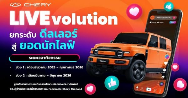 เชอรี ประเทศไทย จัดกิจกรรม Chery LIVEvolution กิจกรรมฝึกอบรมและพัฒนาศักยภาพด้านการ Live Streaming ให้แก่ผู้จำหน่ายเชอรีทั่วประเทศ -