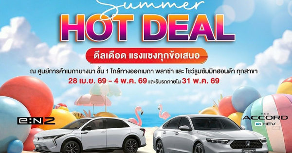 ซัมมิท ฮอนด้า ออโตโมบิล ผู้แทนจำหน่าย รถยนต์ ฮอนด้า อย่างเป็นทางการ ภายใต้บริษัท มิลเลนเนียม กรุ๊ป คอร์ปอเรชั่น (เอเชีย) จำกัด (มหาชน) หรือ MGC-ASIA จัดแคมเปญ ‘Summer Hot Deal’ ให้ลูกค้าได้รับความคุ้มค่าสูงสุด กับดีลเดือดแรง แซงทุกข้อเสนอ ยกทัพยนตรกรรมจัดเต็มทั้งรถยนต์ไฟฟ้ารุ่นล่าสุด ฮอนด้า e:N2 พร้อมอีกหลายรุ่นยอดนิยม มาให้สัมผัสอย่างใกล้ชิด วันนี้ ถึง 4 พฤษภาคม 2569 ณ ศูนย์การค้าเมกาบางนา ชั้น 1 ใกล้ทางออก เมกา พลาซ่า และโชว์รูม ซัมมิท ฮอนด้า ทุกสาขา