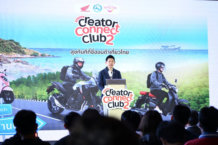 ไทยฮอนด้า ร่วมกับ การท่องเที่ยวแห่งประเทศไทย (ททท.) จัดงานแถลงข่าวแคมเปญร่วม “Thai Honda Creator Connect Club ปีที่ 2: สุขทันทีที่ขี่ฮอนด้าเที่ยวไทย” เปิดพื้นที่ให้คอนเทนต์ครีเอเตอร์จากทั่วประเทศได้ออกเดินทางถ่ายทอดเสน่ห์การท่องเที่ยวไทยผ่านการขับขี่รถจักรยานยนต์ฮอนด้า ยกระดับทักษะการสร้างคอนเทนต์อย่างมืออาชีพ พร้อมกันนี้ยังได้เปิดตัวครีเอเตอร์ผู้เข้ารอบ 20 คนสุดท้าย จากการค้นหาและคัดสรรสุดเข้มข้นจาก 400 คลิปที่ส่งเข้าประกวดโดยครีเอเตอร์ทั่วประเทศ เพื่อเข้าร่วม Thai Honda Creator Connect Camp สุดเอ็กซ์คลูซีฟ 3 วัน 2 คืน ระหว่างวันที่ 29 – 31 มกราคม 2569 ที่จังหวัดระยอง ซึ่งผู้เข้าร่วมจะได้ร่วมเวิร์กชอปใกล้ชิดกับครีเอเตอร์มืออาชีพ ฝึกฝนการสร้างสรรค์คอนเทนต์ผ่านประสบการณ์การเดินทางจริง และสัมผัสการท่องเที่ยวไทยในมุมมองใหม่ด้วยรถจักรยานยนต์ฮอนด้า ก่อนเข้าสู่กิจกรรมการแข่งขันสร้างสรรค์คอนเทนต์ เพื่อชิงรางวัลรวมมูลค่าทั้งแคมเปญกว่า 2,000,000 บาท