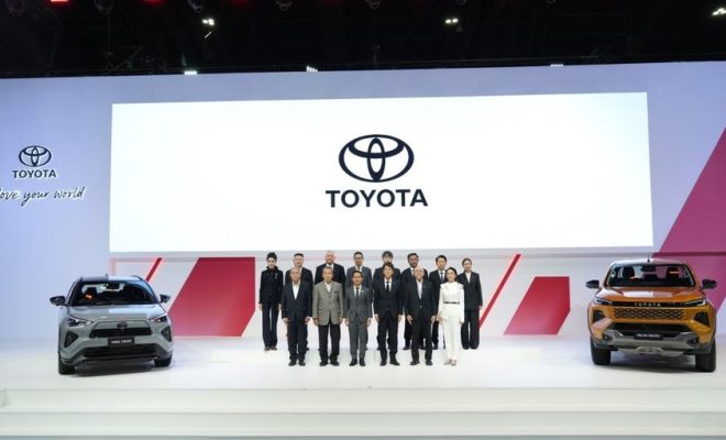 มร.โนริอากิ ยามาชิตะ กรรมการผู้จัดการใหญ่ และคณะผู้บริหารระดับสูง บริษัท โตโยต้า มอเตอร์ ประเทศไทย จำกัด ร่วมเปิดบูธโตโยต้าในงาน “มหกรรมยานยนต์ ครั้งที่ 42 Thailand International Motor Expo 2025” ภายใต้แนวคิด Move your world จัดแสดงรถยนต์โตโยต้าที่ตอบโจทย์ทุกไลฟ์สไตล์ นำโดยรถกระบะมหาชนรุ่นใหม่ “HILUX TRAVO” เสริมทัพด้วยรถยนต์ไฟฟ้าแบตเตอรี่ (BEV) ทั้ง “HILUX TRAVO-e” และ “bZ4X” ตอกย้ำความเป็นผู้นำ HEV ด้วยรถยนต์ไฮบริดรุ่นใหม่ “YARIS CROSS NIGHTSHADE EDITION”, “NEW YARIS ATIV HEV” และ “INNOVA ZENIX” เติมเต็มไลน์อัพผู้นำตัวจริงในตลาด PPV ด้วย “FORTUNER LEADER G+” พร้อมพบกับการกลับมาของตำนานรถแข่ง “GR86” รุ่นใหม่ พร้อมประกาศราคาภายในงาน โดยรถทุกรุ่นมาพร้อมข้อเสนอสุดพิเศษ “ดีลตอบจบ ครบทุกความต้องการ” และแคมเปญส่งท้ายปี “โตโยต้า อาริกาโตะ” ในระหว่างวันที่ 29 พฤศจิกายน ถึง 10 ธันวาคม 2568 ณ อาคารชาเลนเจอร์ฮอลล์ อิมแพ็ค เมืองทองธานี