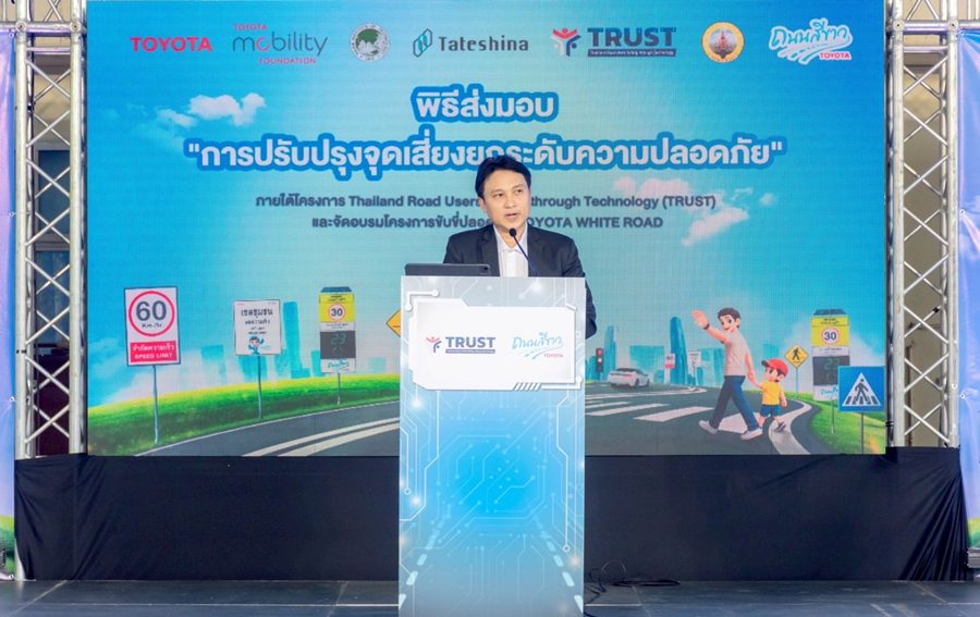 นายนันทวัฒน์ ศรีวรัตน์อัชกุล ผู้ช่วยกรรมการผู้จัดการใหญ่ บริษัท โตโยต้า มอเตอร์ ประเทศไทย จำกัด ส่งมอบ “โครงการปรับปรุงจุดเสี่ยง ยกระดับความปลอดภัย” ที่ดำเนินงานภายใต้โครงการ Thailand Road Users Safety through Technology (TRUST) ณ บริเวณถนนทางหลวงแผ่นดินหมายเลข 3076 ใกล้จุดกลับรถวัดดอนทอง ตำบลท่าถ่าน อำเภอพนมสารคาม จังหวัดฉะเชิงเทรา แก่นางสาวฉัตรประอร นิยม ผู้ว่าราชการจังหวัดฉะเชิงเทรา เมื่อวันที่ 3 เมษายน 2569