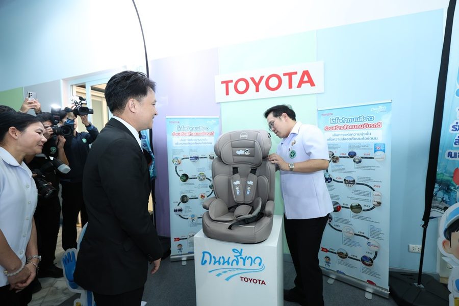 ขณะโดยสารรถยนต์ แต่ในทางปฏิบัติยังคงพบอุปสรรคจากการขาดความรู้ความเข้าใจของประชาชน รวมถึงข้อจำกัดด้านราคาและการเข้าถึงอุปกรณ์ดังกล่าว ดังนั้นโตโยต้าจึงมอบที่นั่งนิรภัยสำหรับเด็ก จำนวน 30 ที่นั่งให้แก่กระทรวงสาธารณสุข