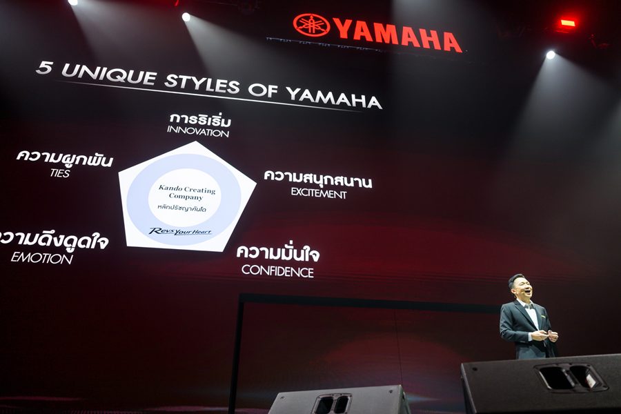 โดยทั้ง 3 กลยุทธ์หลักนี้ ยามาฮ่าจะดำเนินการควบคู่กับการทำตลาดเชิงไลฟ์สไตล์ (Lifestyle Marketing) ภายใต้แคมเปญ “FEEL THE UNIQUE EXPERIENCE…สุดทุกทางต่างทุกฟีล” ที่จะนำเสนอทั้งสินค้าใหม่ กิจกรรมทางการตลาด และประสบการณ์ที่หลากหลายให้กับลูกค้า พร้อมยกระดับการบริการ 3S (Sales, Service, Spare Parts) เพื่อสร้างความพึงพอใจสูงสุด ตามปรัชญา KANDO ของยามาฮ่า”