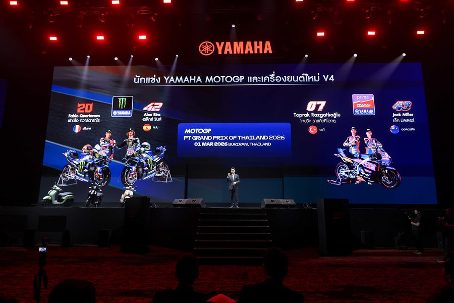 พร้อมกันนี้ในการแข่งขัน MotoGP ฤดูกาล 2026 รายการ PT Grand Prix of Thailand ซึ่งมีกำหนดจัดขึ้นระหว่างวันที่ 27 กุมภาพันธ์ – 1 มีนาคม 2569 ยามาฮ่าได้ประกาศการปรับทัพครั้งสำคัญ ด้วยการเปิดตัวรถแข่ง YZR-M1 เครื่องยนต์ V4 พร้อมไลน์อัพนักบิดระดับโลกจำนวน 4 คน นำโดย ฟาบิโอ กวาร์ตาราโร หมายเลข 20 และ อเล็กซ์ รินส์ หมายเลข 42 จากทีม Monster Energy YAMAHA MotoGP ผนึกกำลังกับ แจ็ค มิลเลอร์ หมายเลข 43 และนักบิดหน้าใหม่อย่าง โทปรัค ราซกัตลิโอกลู เจ้าของแชมป์โลก World Superbike Championship จำนวน 3 สมัย จากทีม Prima Pramac YAMAHA MotoGP เพื่อยกระดับศักยภาพการแข่งขัน และตอกย้ำความมุ่งมั่นของยามาฮ่าในเวทีโมโตจีพีฤดูกาลใหม่