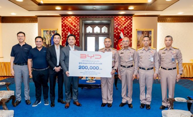 บริษัท บีวายดี ออโต้ (ประเทศไทย) จำกัด พร้อมด้วย บริษัท เรเว่ ออโตโมทีฟ จำกัด ผู้จัดจําหน่ายและให้บริการหลังการขายรถยนต์พลังงานใหม่ บีวายดี และ เดนซ่า อย่างเป็นทางการในประเทศไทย ภายใต้ กลุ่มธุรกิจเรเว่ ร่วมเป็นส่วนหนึ่งในการช่วยเหลือผู้ประสบภัย จากกรณีมหาอุทกภัยในภาคใต้ ซึ่งมีพี่น้องประชาชนชาวไทย ได้รับความเดือดร้อนเป็นจำนวนมาก บีวายดี ประเทศไทย และ กลุ่มธุรกิจเรเว่ ขอส่งกำลังใจให้ผู้ประสบภัยทุกคน ร่วมฟันฝ่าวิกฤตในครั้งนี้ไปด้วยกัน พร้อมส่งความห่วงใย ผ่านการมอบน้ำดื่ม 12,000 ขวด เมื่อวันที่ 25 พฤศจิกายน 2568 และในวันที่ 26 พฤศจิกายน 2568 ได้บริจาคสิ่งของช่วยเหลือมูลค่า 200,000 บาท ให้กับ พลเรือเอก ไพโรจน์ เฟื่องจันทร์ ผู้บัญชาการทหารเรือ เป็นตัวแทนรับมอบ เพื่อนำไปส่งต่อช่วยเหลือผู้ประสบอุทกภัยต่อไป