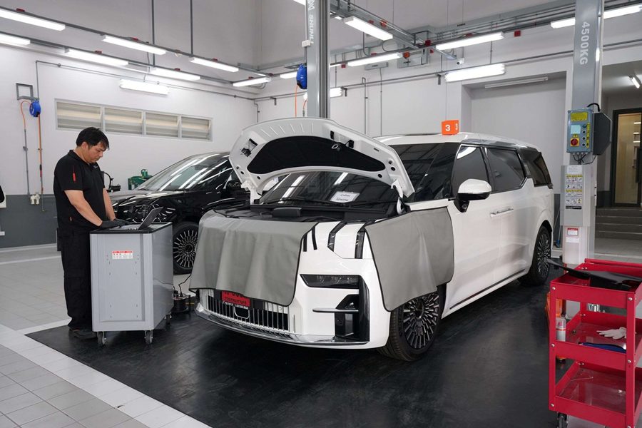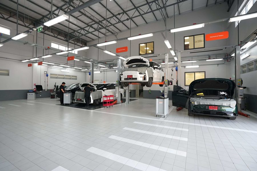 ด้านศูนย์บริการหลังการขาย Zeekr House Primus ได้ออกแบบพื้นที่เพื่อรองรับการให้บริการอย่างครบวงจร ครอบคลุมทั้งงานตรวจเช็ก ซ่อมแซม บำรุงรักษา รวมถึงงานซ่อมสีและตัวถัง ภายใต้มาตรฐานคุณภาพระดับสูง โดยทีมช่างผู้เชี่ยวชาญที่ผ่านการอบรมตามหลักสูตรของ Zeekr พร้อมด้วยอุปกรณ์และเทคโนโลยีที่ทันสมัย เพื่อรองรับการดูแลรักษารถยนต์ได้อย่างมีประสิทธิภาพสูงสุด โดยมีช่องซ่อมรวม 8 ช่อง รองรับรถยนต์เข้ารับบริการได้ถึง 600 คันต่อเดือน