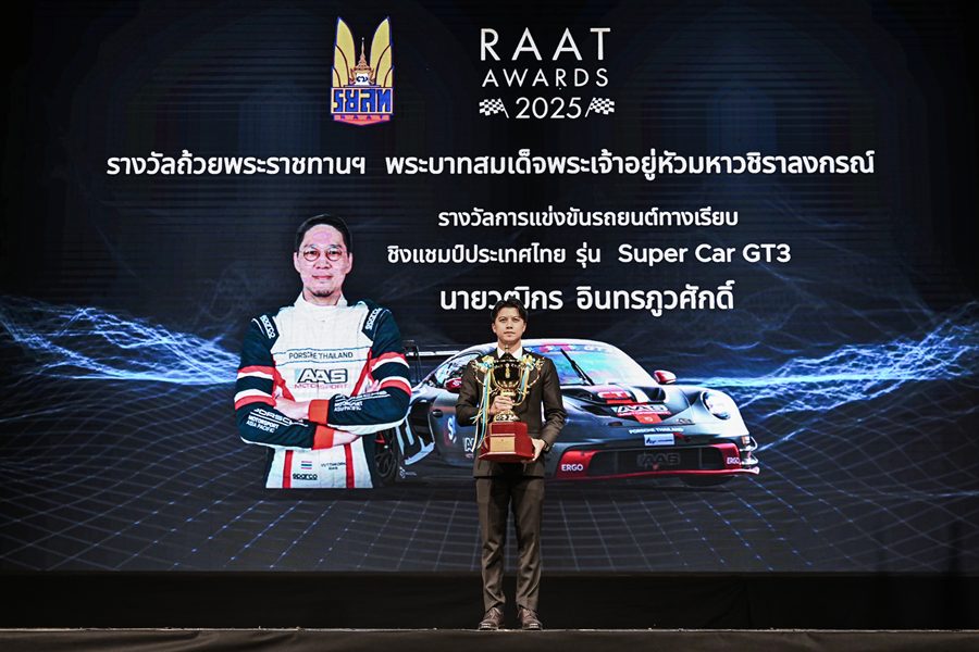 ขอแสดงความยินดีกับ “เต๊อะ วุฒิกร อินทรภูวศักดิ์” กับความสำเร็จอันยิ่งใหญ่จากการแข่งขันรถยนต์ทางเรียบรายการ Thailand Super Series 2025 หลังสามารถคว้าแชมป์ประเทศไทยในประเภท Super Car GT3 พร้อมรับ ถ้วยรางวัลพระราชทานพระบาทสมเด็จพระเจ้าอยู่หัวมหาวชิราลงกรณ บดินทรเทพยวรางกูร ประจำปี 2025 โดยมีพิธีมอบรางวัลในงาน RAAT Awards 2025 ซึ่งจัดขึ้นเมื่อวันพฤหัสบดีที่ 29 มกราคม 2569 ณ โรงแรม ESC Park