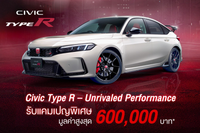 ฮอนด้า ออโตโมบิล (ประเทศไทย) เปิดดีลแรงเกินพิกัดกับแคมเปญ “Civic Type R – Unrivaled Performance” รับสิทธิพิเศษมูลค่าสูงสุด 600,000 บาท อย่ารอช้า ! ที่โชว์รูมฮอนด้าทั่วประเทศ