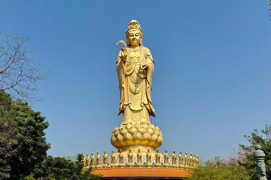 เส้นทางแห่งความโชคดีเริ่มต้นที่ วัดโฝวกวงซัน (คู้บอน) วัดพุทธมหายานจากไต้หวัน สาขาของวัดโฝวกวงซัน เมืองเกาสง ก่อตั้งโดยพระอาจารย์ซิงหวิน โดดเด่นด้วยสถาปัตยกรรมจีนขนาดใหญ่และบรรยากาศที่เงียบสงบ เหมาะสำหรับการขอพรด้านความเจริญรุ่งเรืองในชีวิต การงาน ธุรกิจ และสุขภาพ โดยไม่ยึดติดพิธีกรรมซับซ้อน สะท้อนแนวคิดแห่งความเรียบง่ายและสมดุลในการใช้ชีวิต ภายในวัดมี จุดที่แนะนำ สำหรับการสักการะขอพรเจ้าแม่กวนอิม โดยสามารถเริ่มจากการ จุดเทียนไฟฟ้า จากนั้นเดินวนรอบองค์เจ้าแม่กวนอิมทั้ง 4 ปาง 3 รอบตามเข็มนาฬิกา (วนซ้าย) เมื่อครบแล้วให้นำเทียนไปวางหน้าปางที่ต้องการอธิษฐาน พร้อมตั้งจิตขอพรอย่างชัดเจน ถือเป็นอันเสร็จพิธี รับความมงคลอย่างเต็มอิ่มพร้อมออกเดินทาง